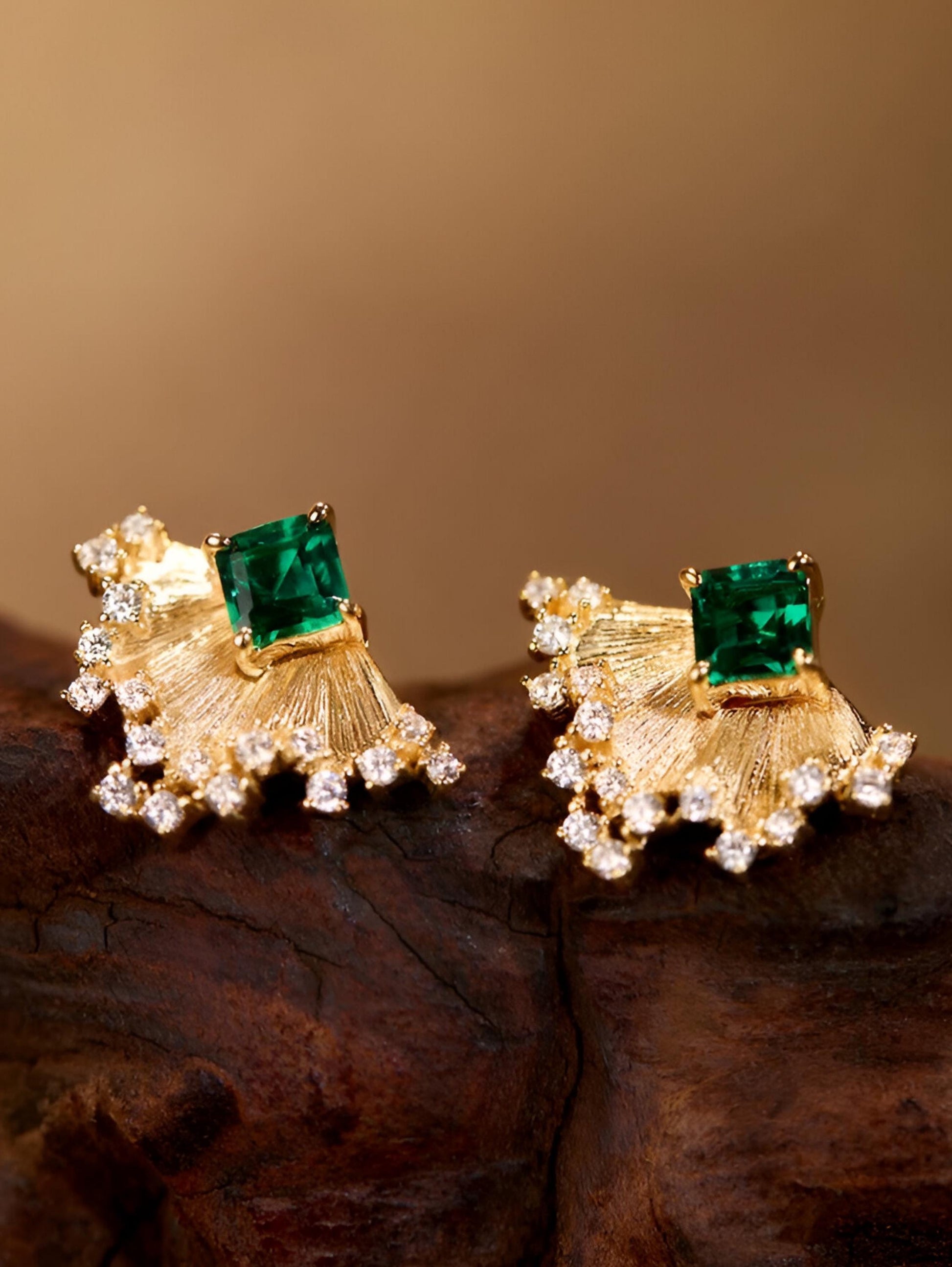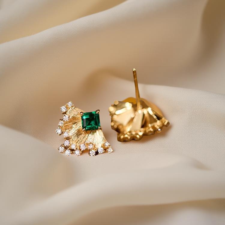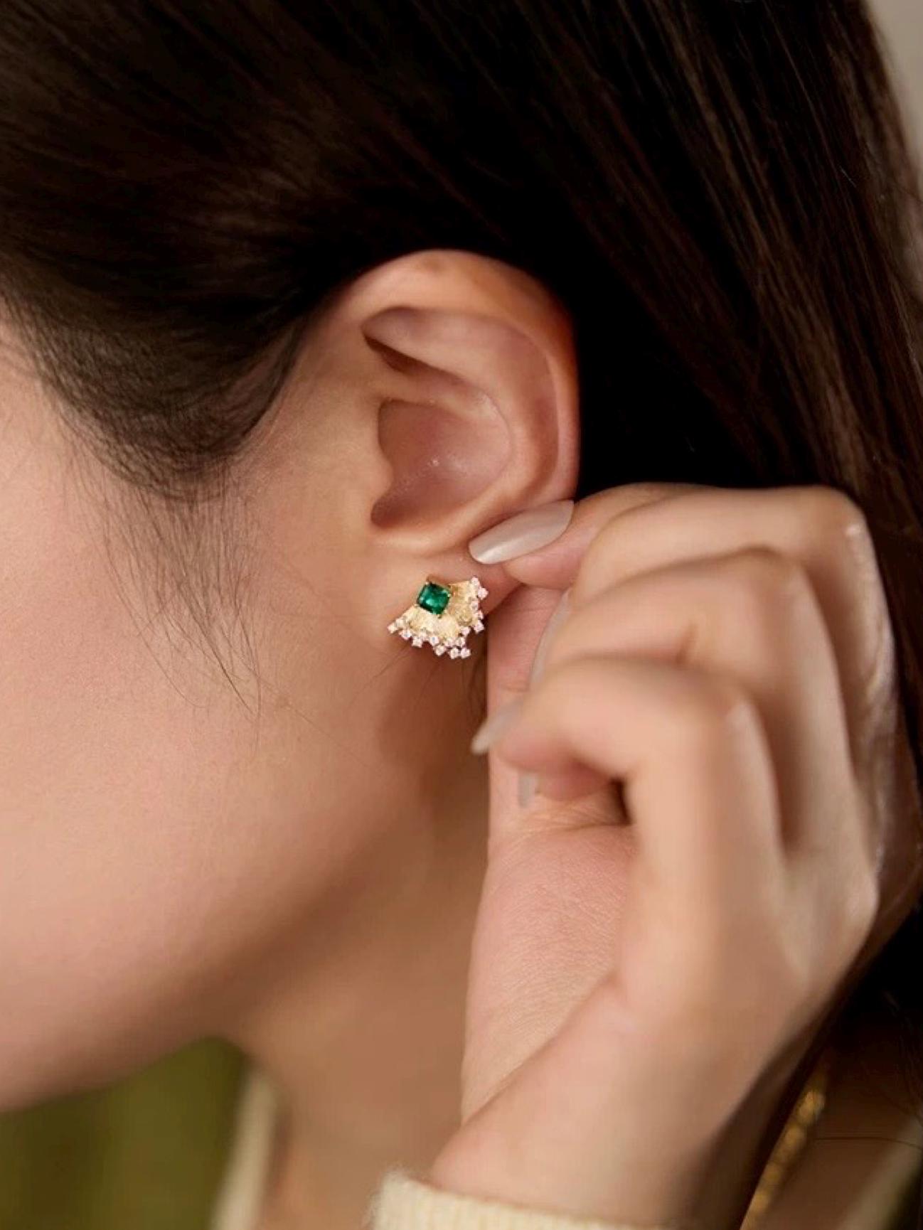 These elegant earrings feature a French-inspired design, Inspired by the graceful curve of a fan and the bold geometry of Art Deco design, they bring together nature and glamour in the most effortless way. Crafted with precision and attention to detail, the earrings showcase a luxurious and sophisticated aesthetic, perfect for those who appreciate jewelry with a touch of old-world charm. unique, small-batch piece that exudes timeless elegance.