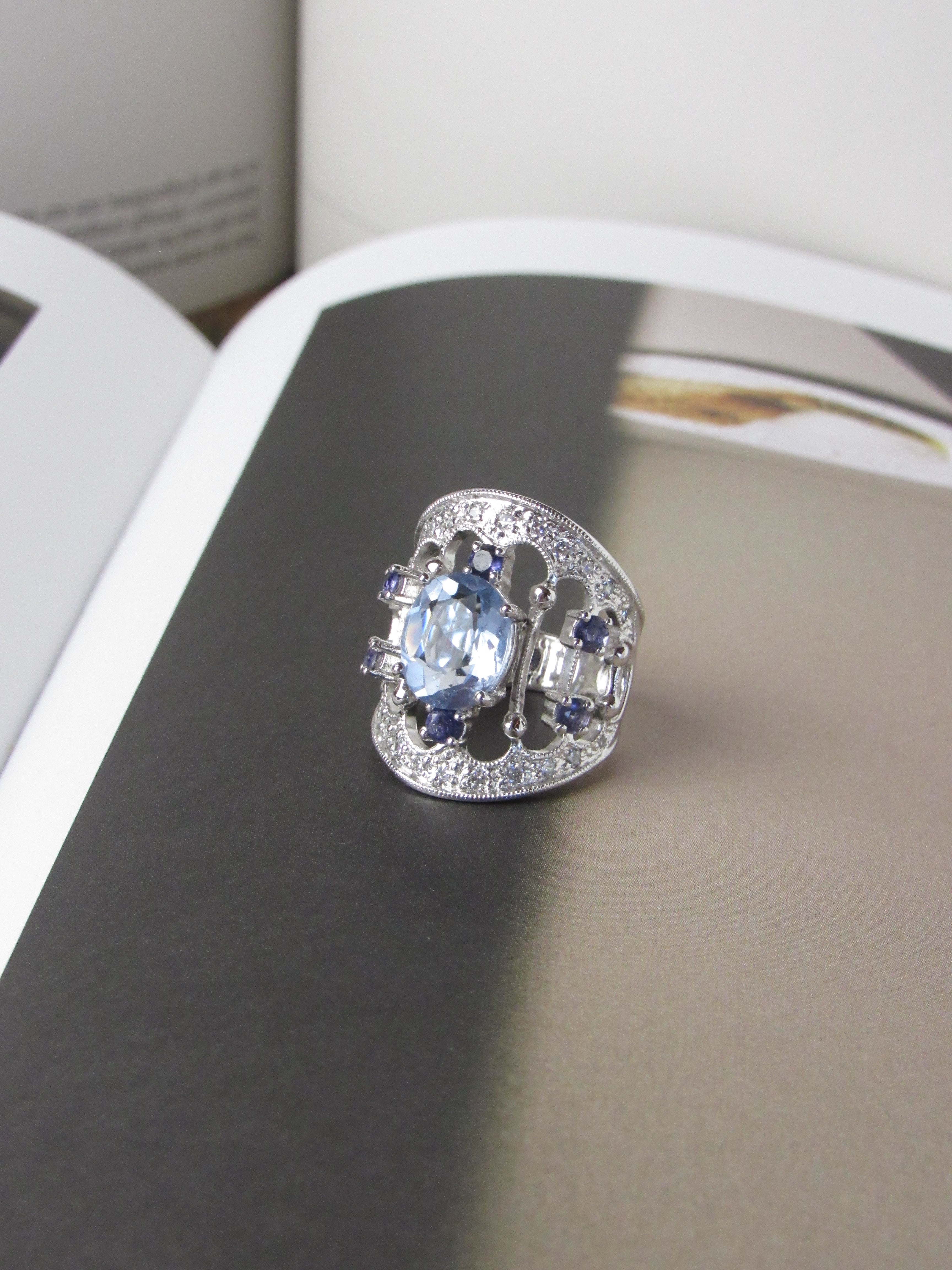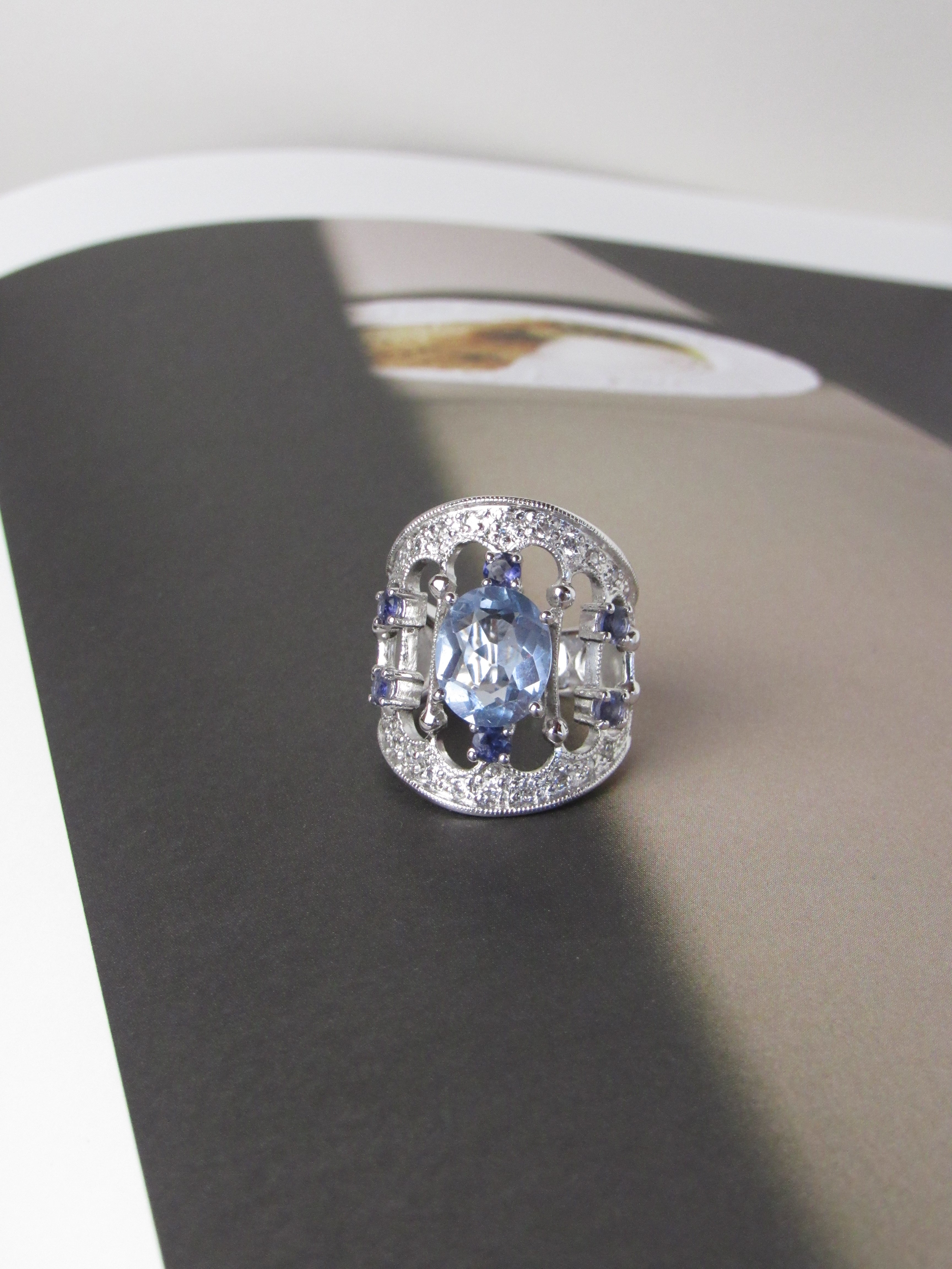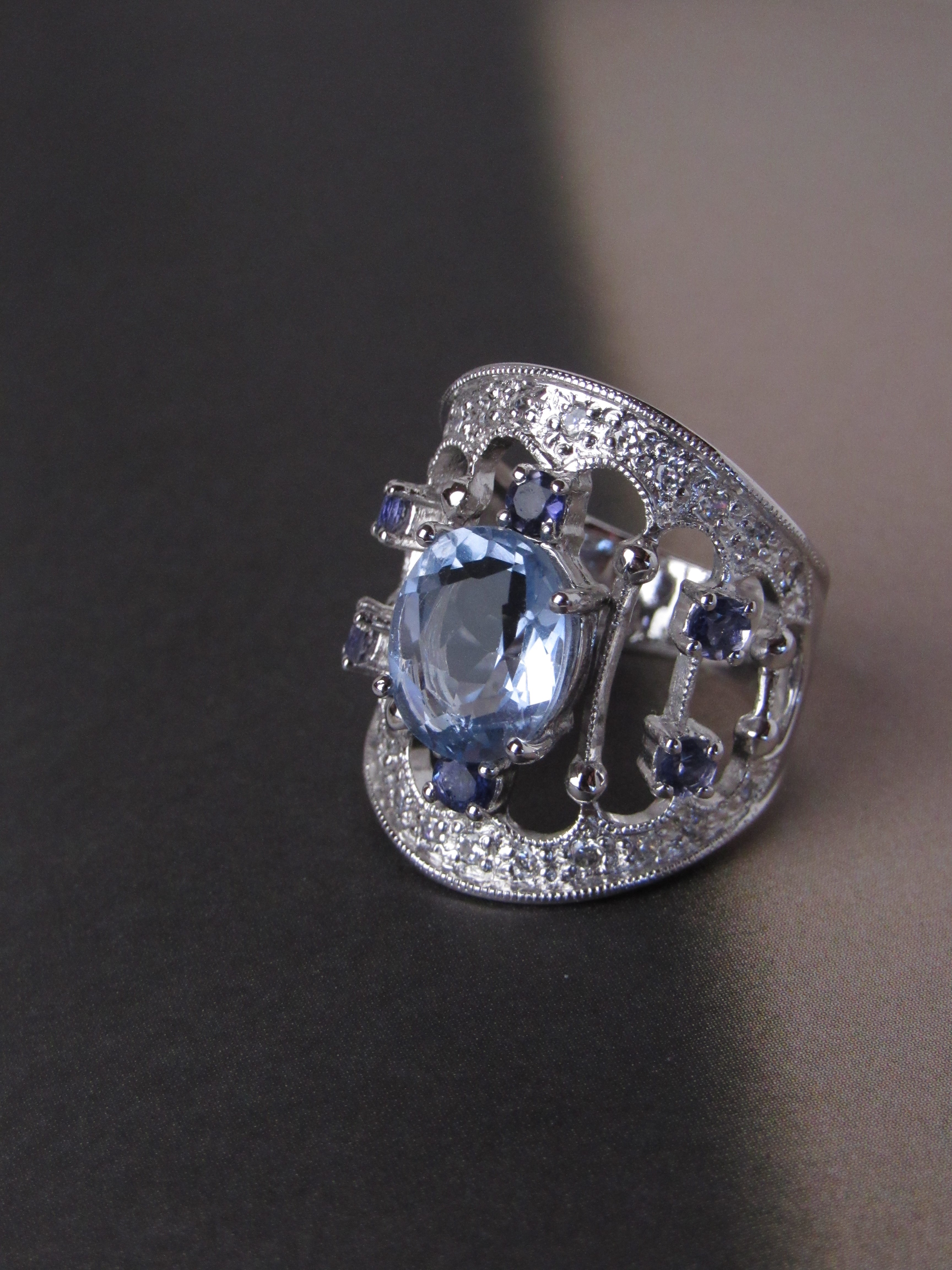 - Natural oval cut 4.2ct Blue Fluorite and 6pc round cut Iolite