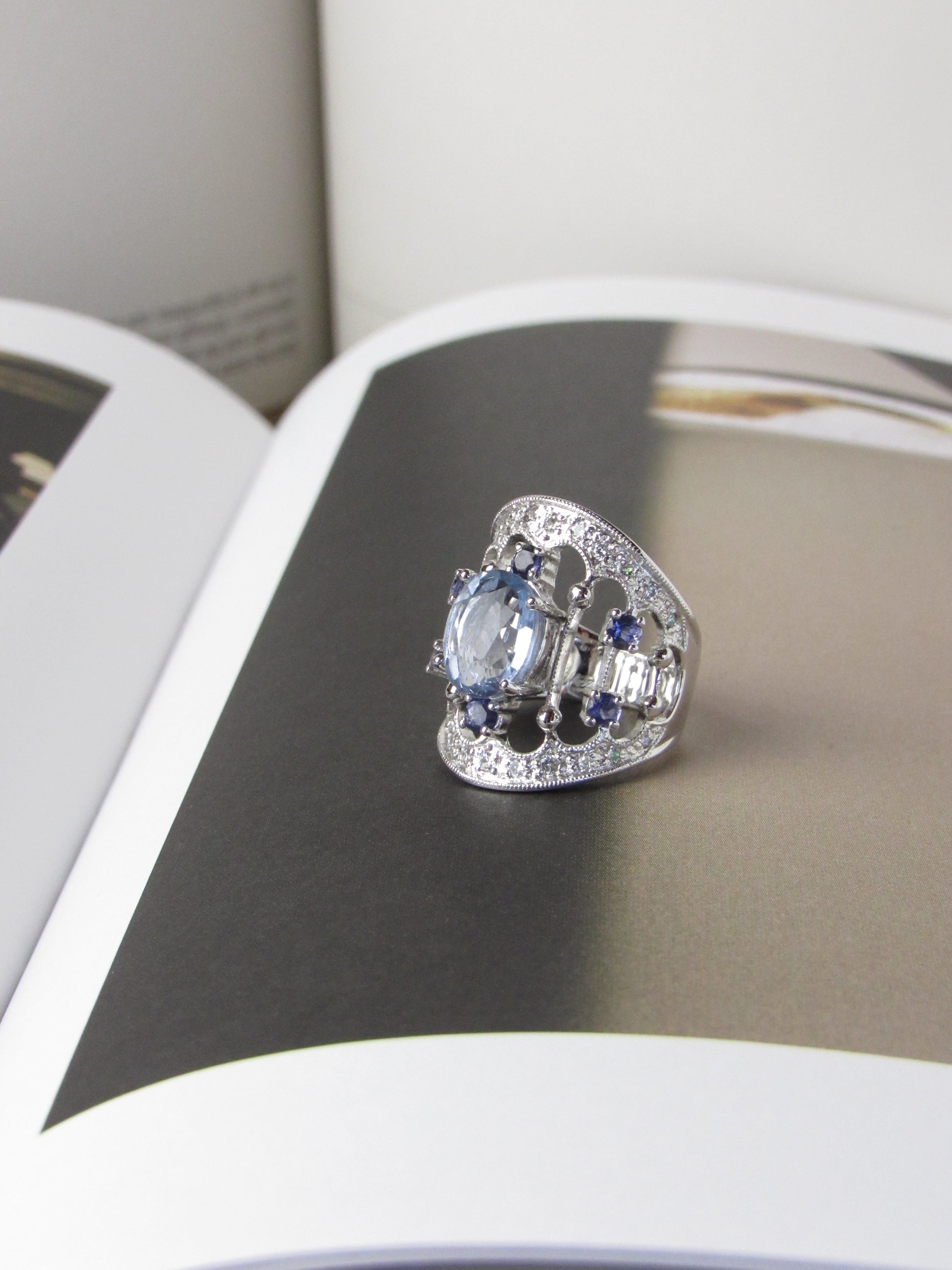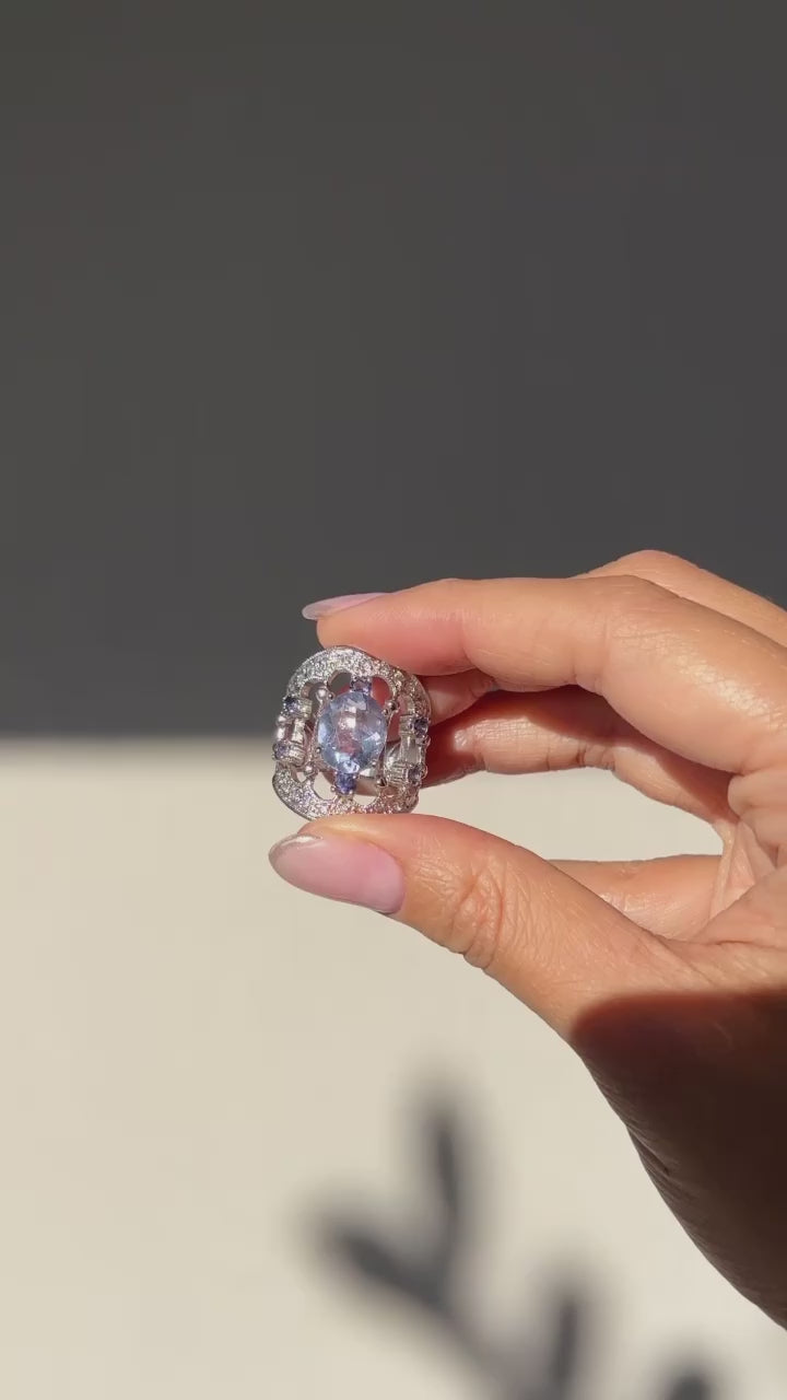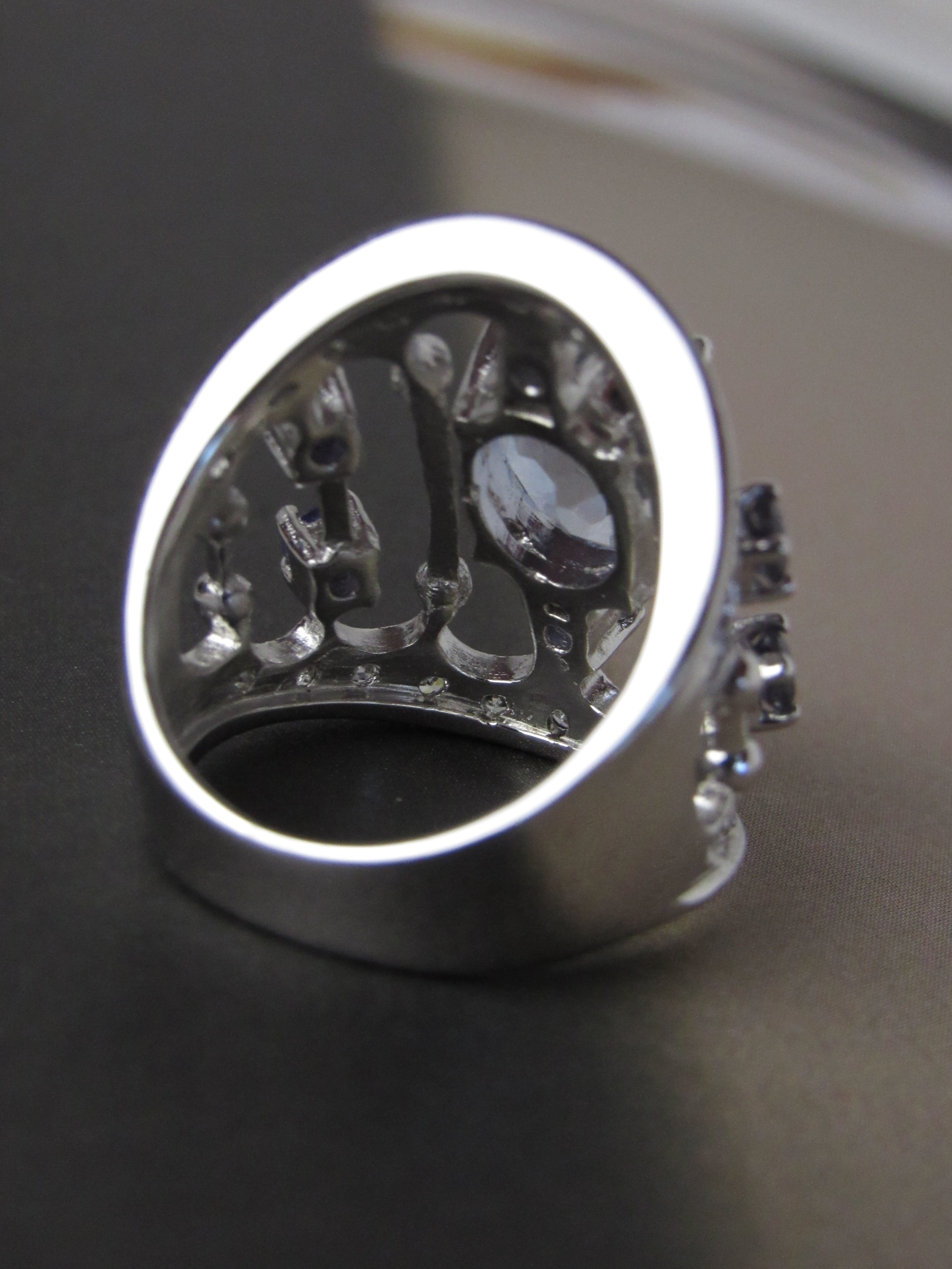 - Natural oval cut 4.2ct Blue Fluorite and 6pc round cut Iolite