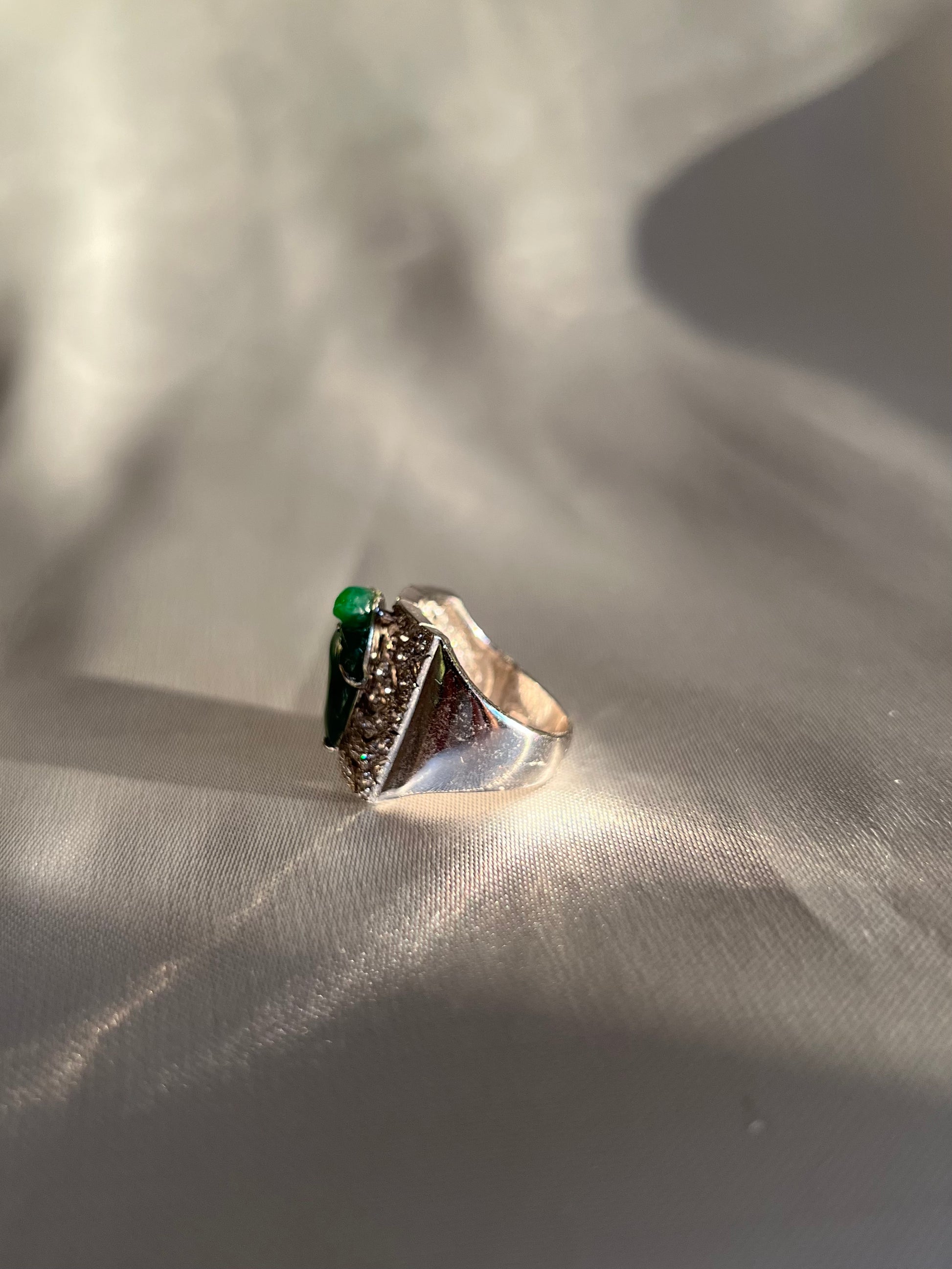 Zodiac Monkey Cloud Jadeite Jade Cocktail Ring